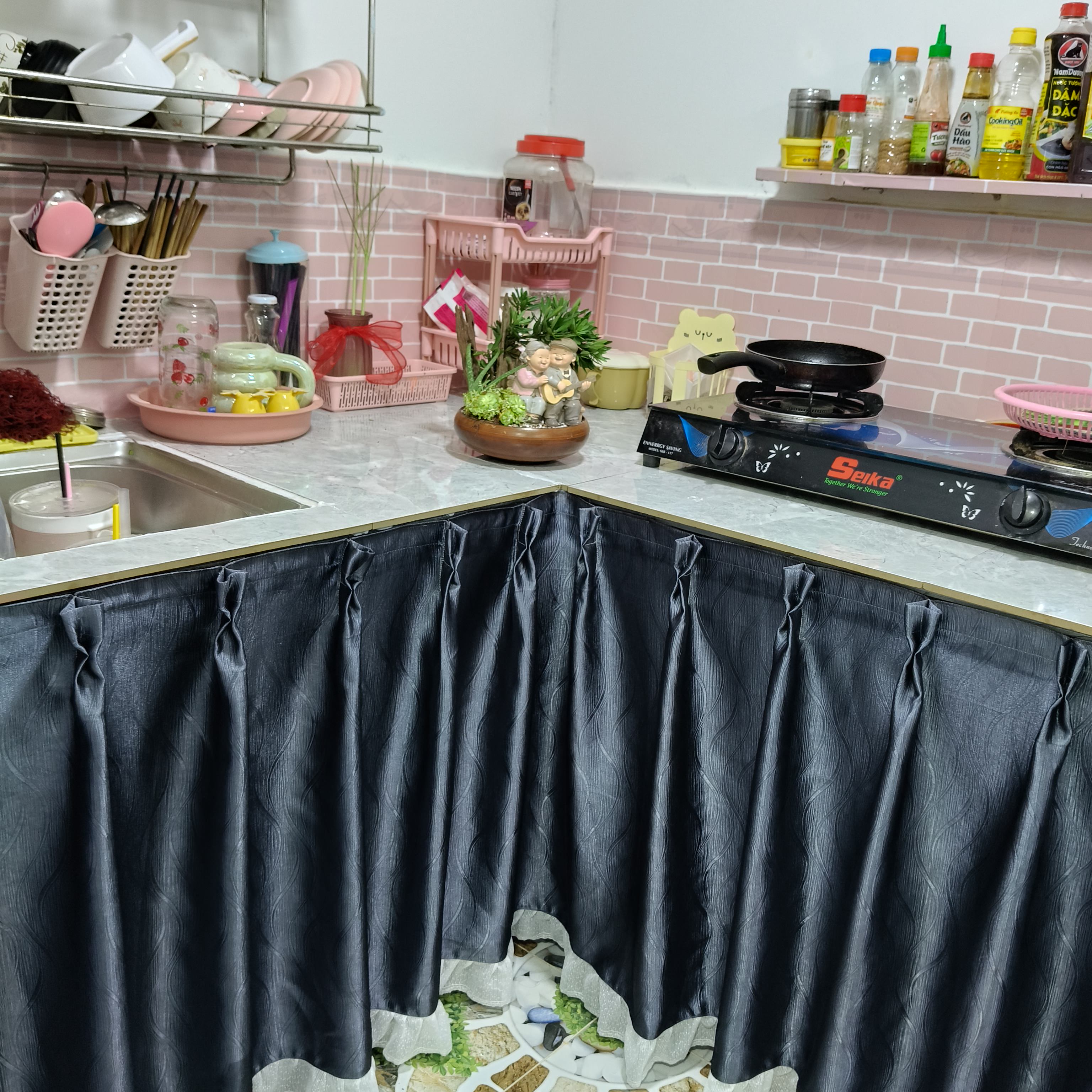 Biến góc bếp đơn giản thành không gian ngọt ngào chỉ với một tấm rèm!