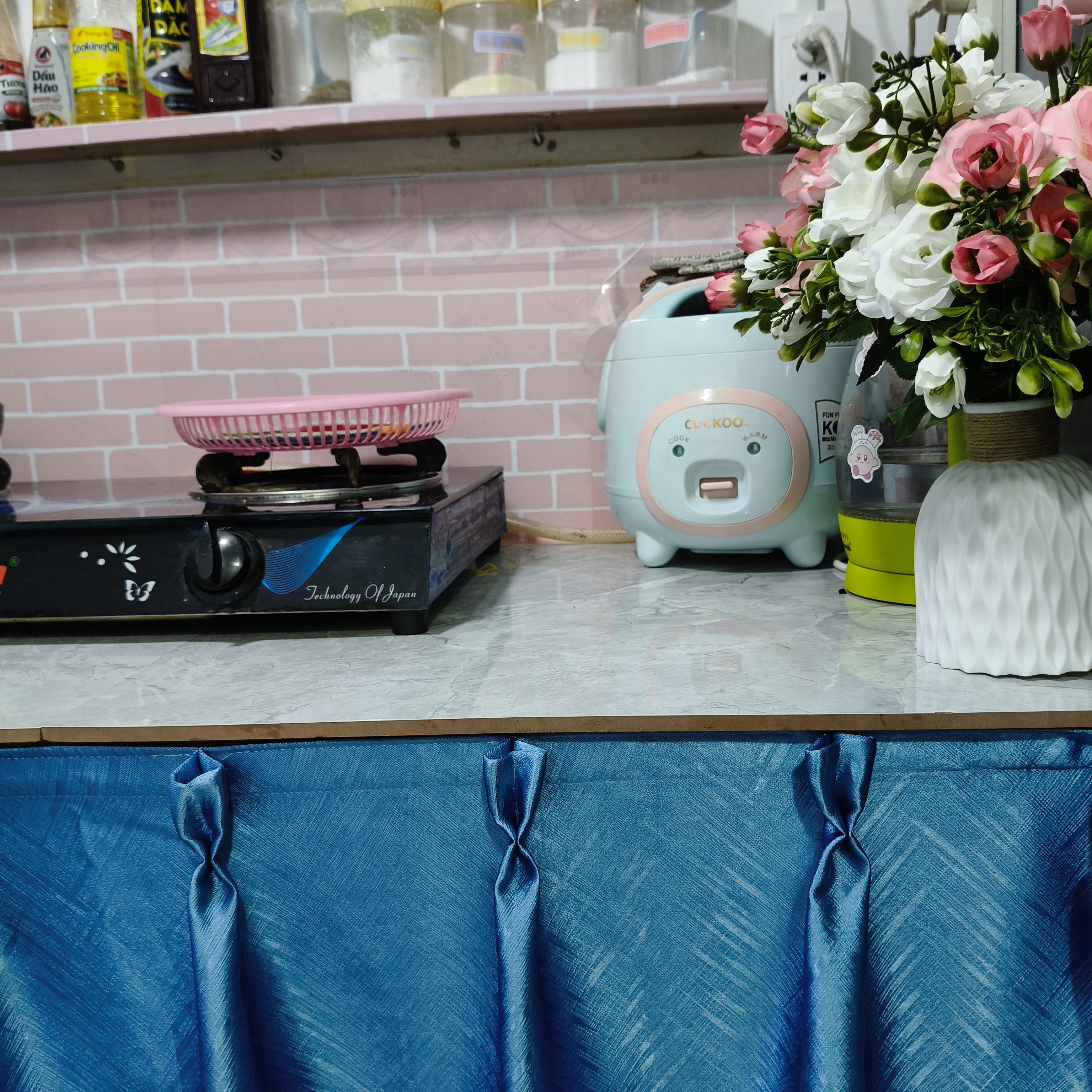 Biến góc bếp đơn giản thành không gian ngọt ngào chỉ với một tấm rèm!
